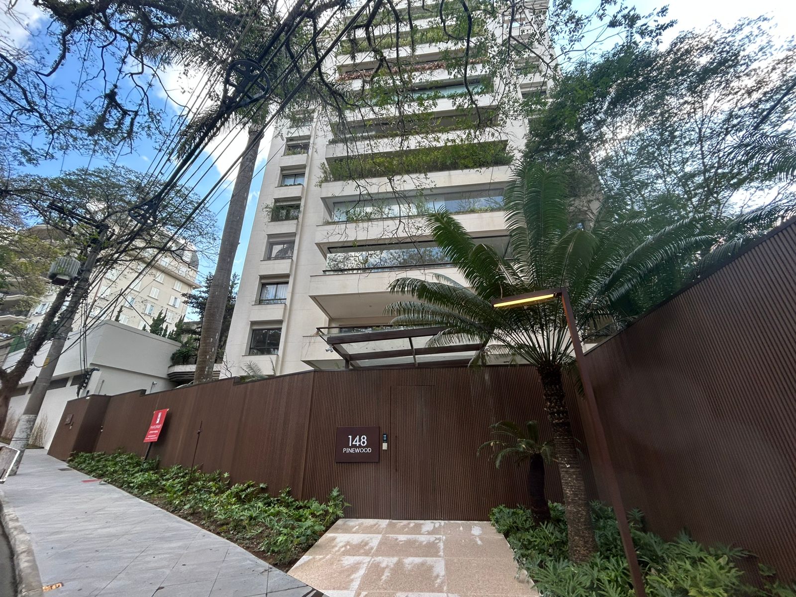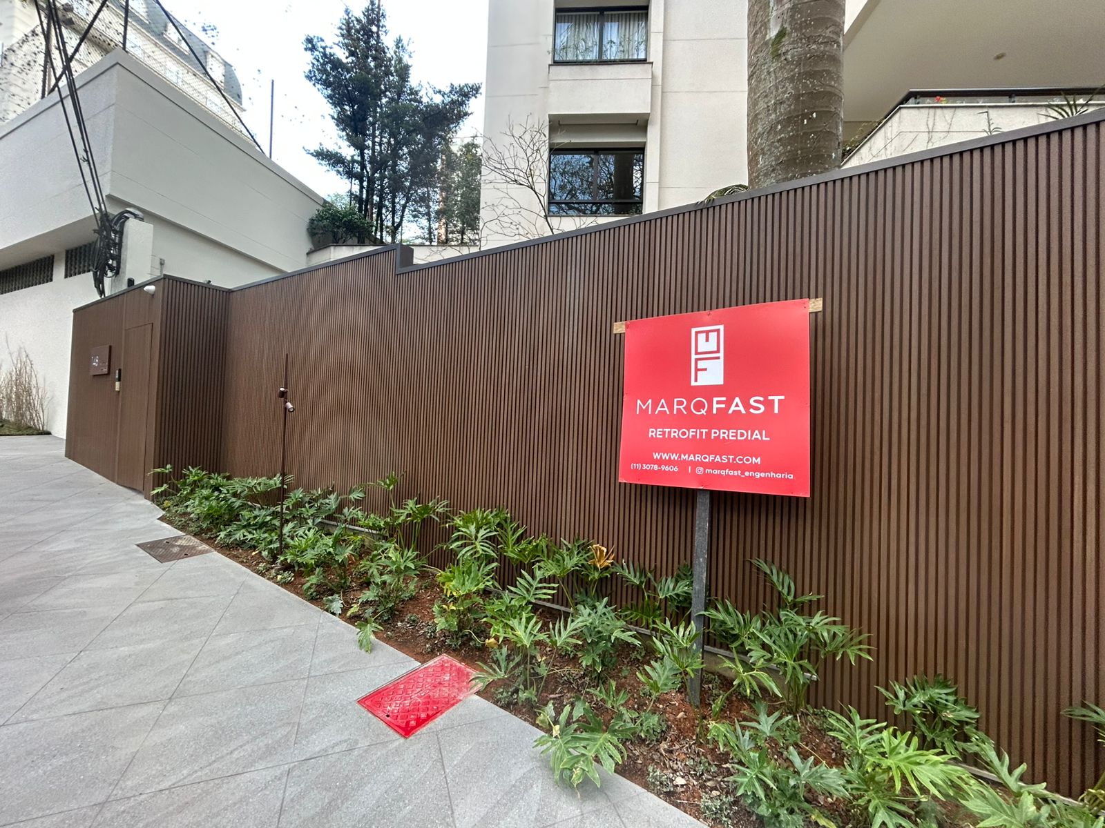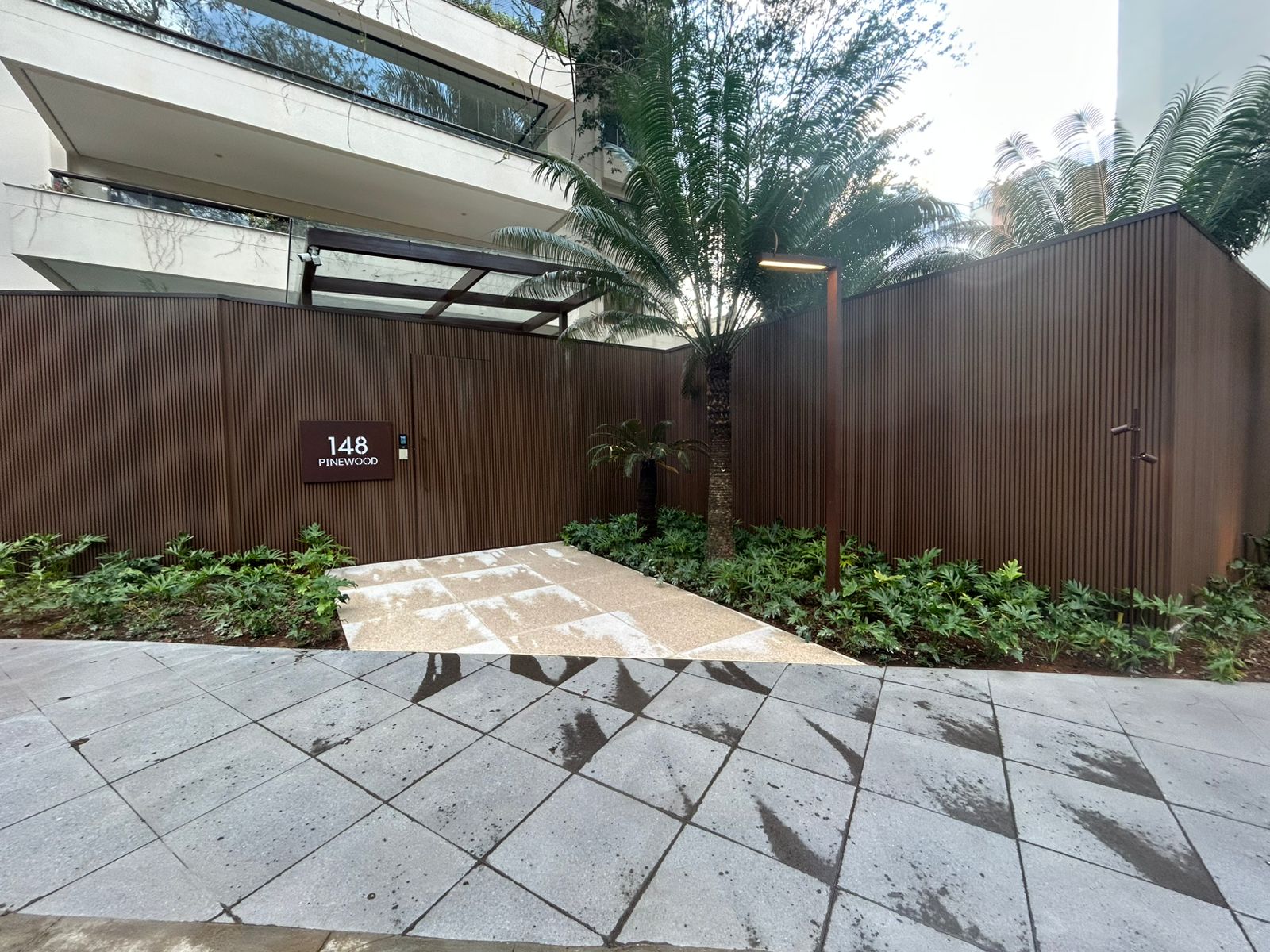 Nova entrada social com pergolado e clausura para pedestres e visitantes.