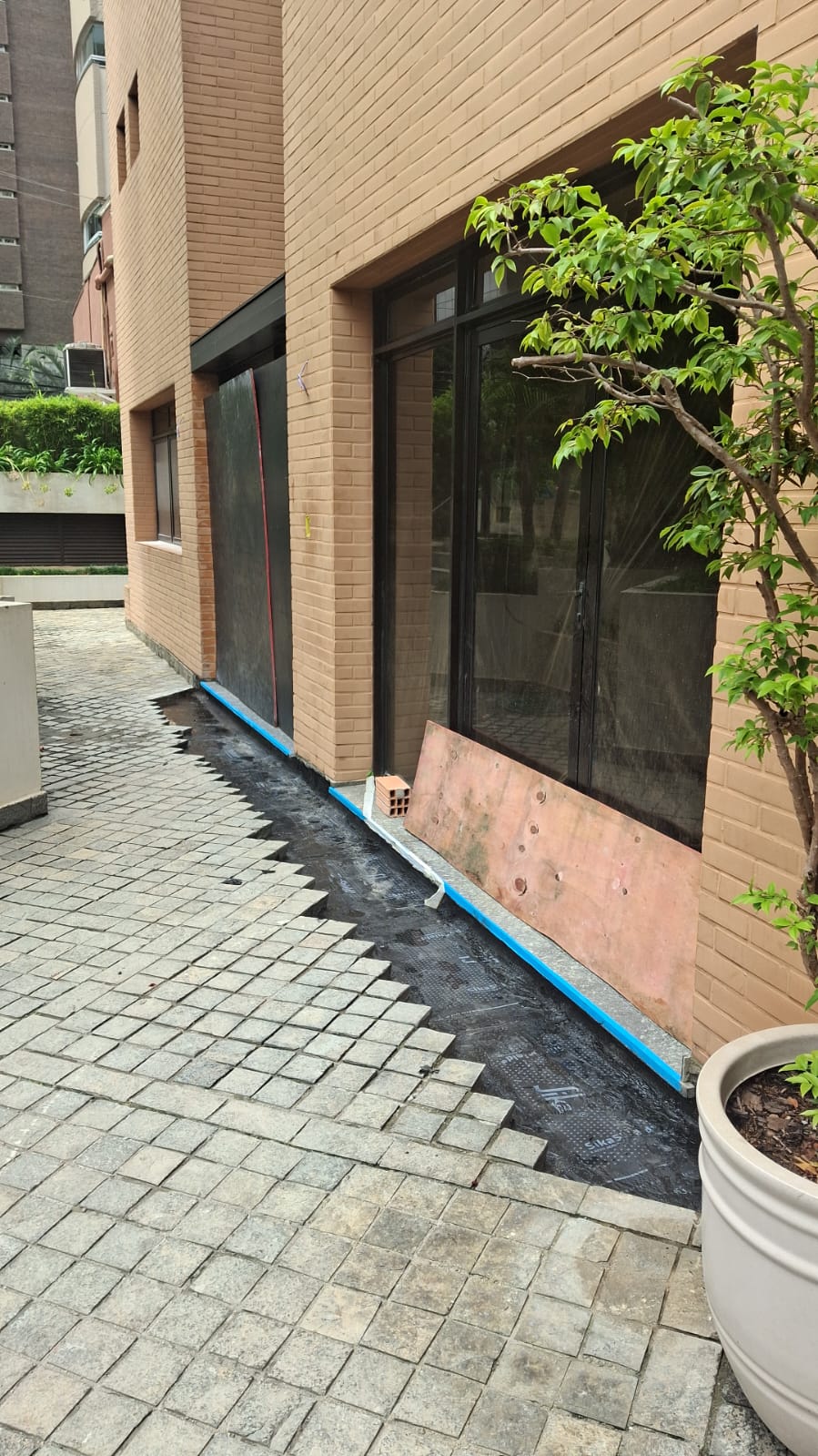 construção de novo acesso de serviço, adequação da fachada ao novo layout, modernização